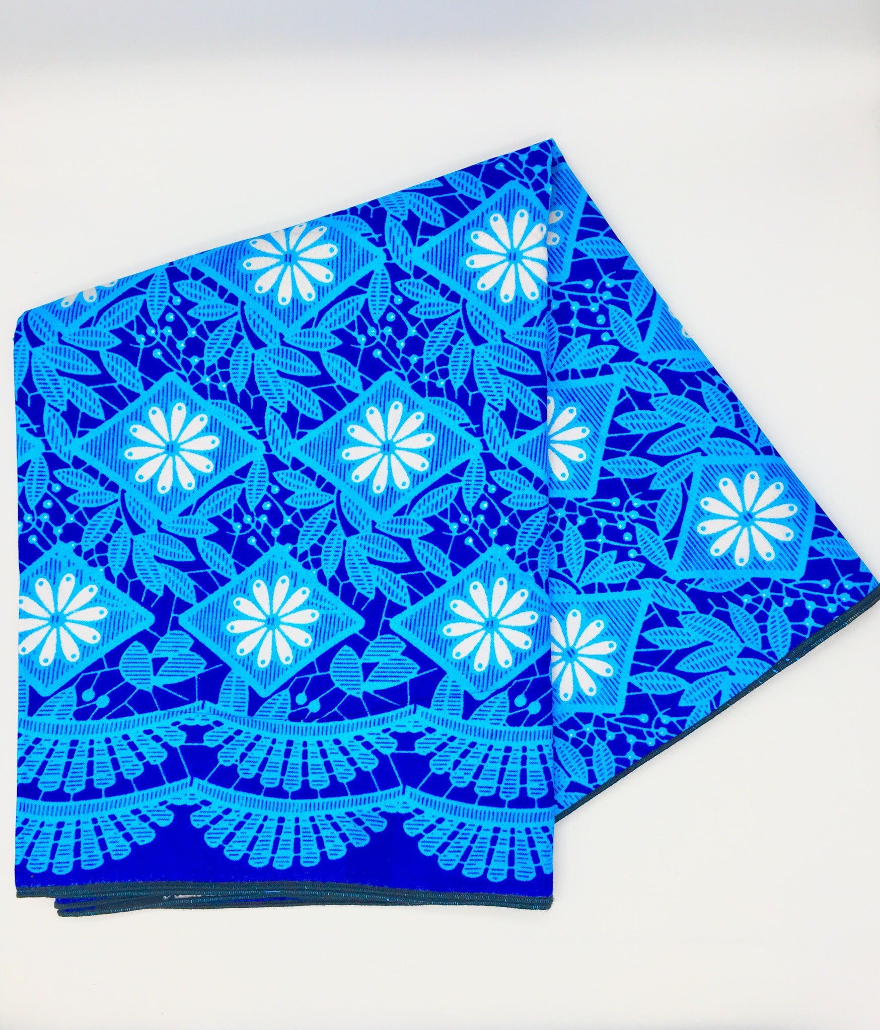 Our head wraps are made from authentic African fabrics, and they are hand sewn. They are 70 inches long and 22.5 inches wide allowing you to fold and wrap the fabric in any number of styles.