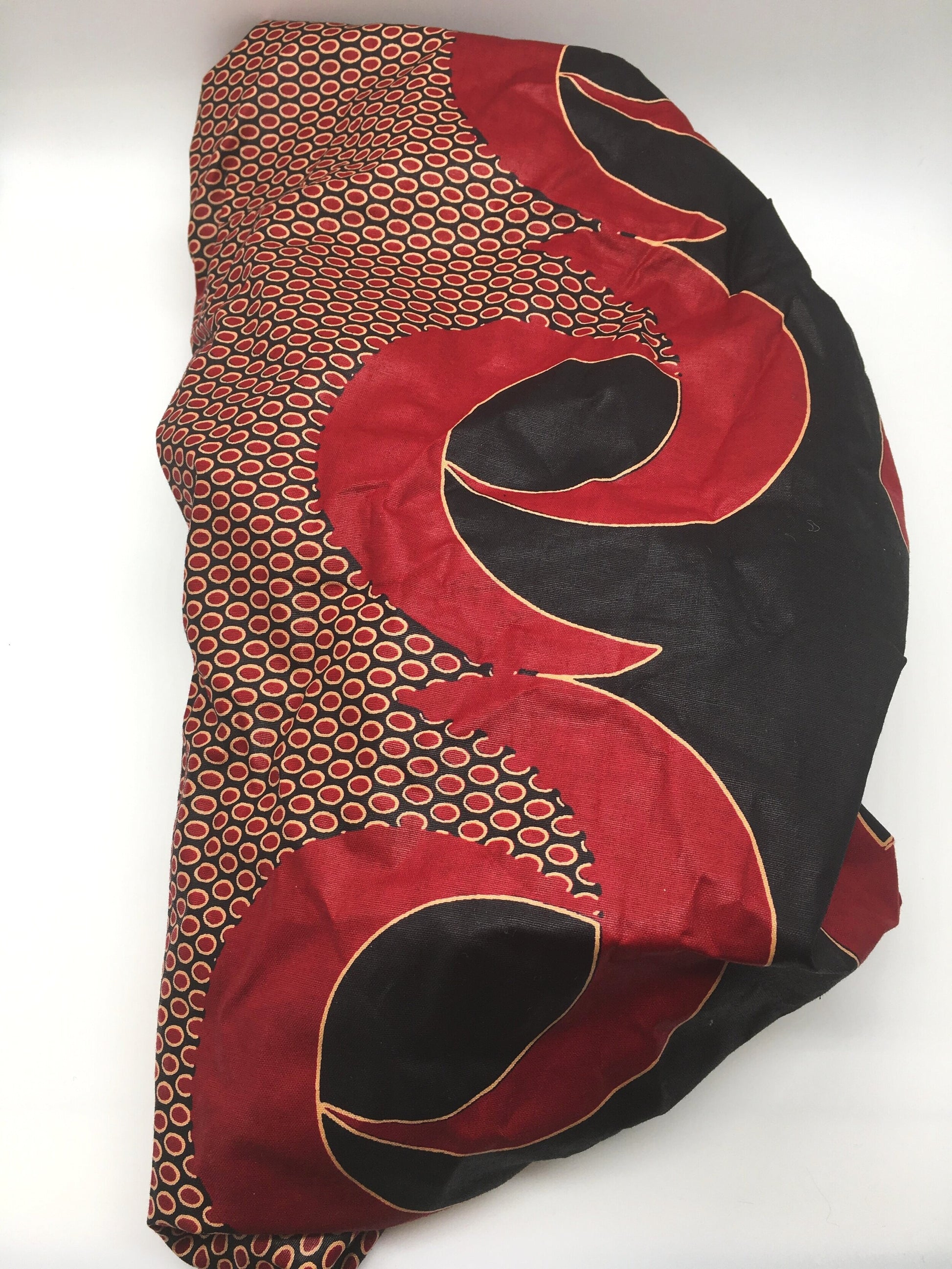 The black satin lining helps to keep hair moisturized and protect against excess breakage often caused by more coarse fabrics. Each hand-sewn bonnet is paired with authentic African fabrics to make each bonnet unique and add some style to your everyday. Our universal bonnet is secured via a comfortable elastic band that should fit most.
