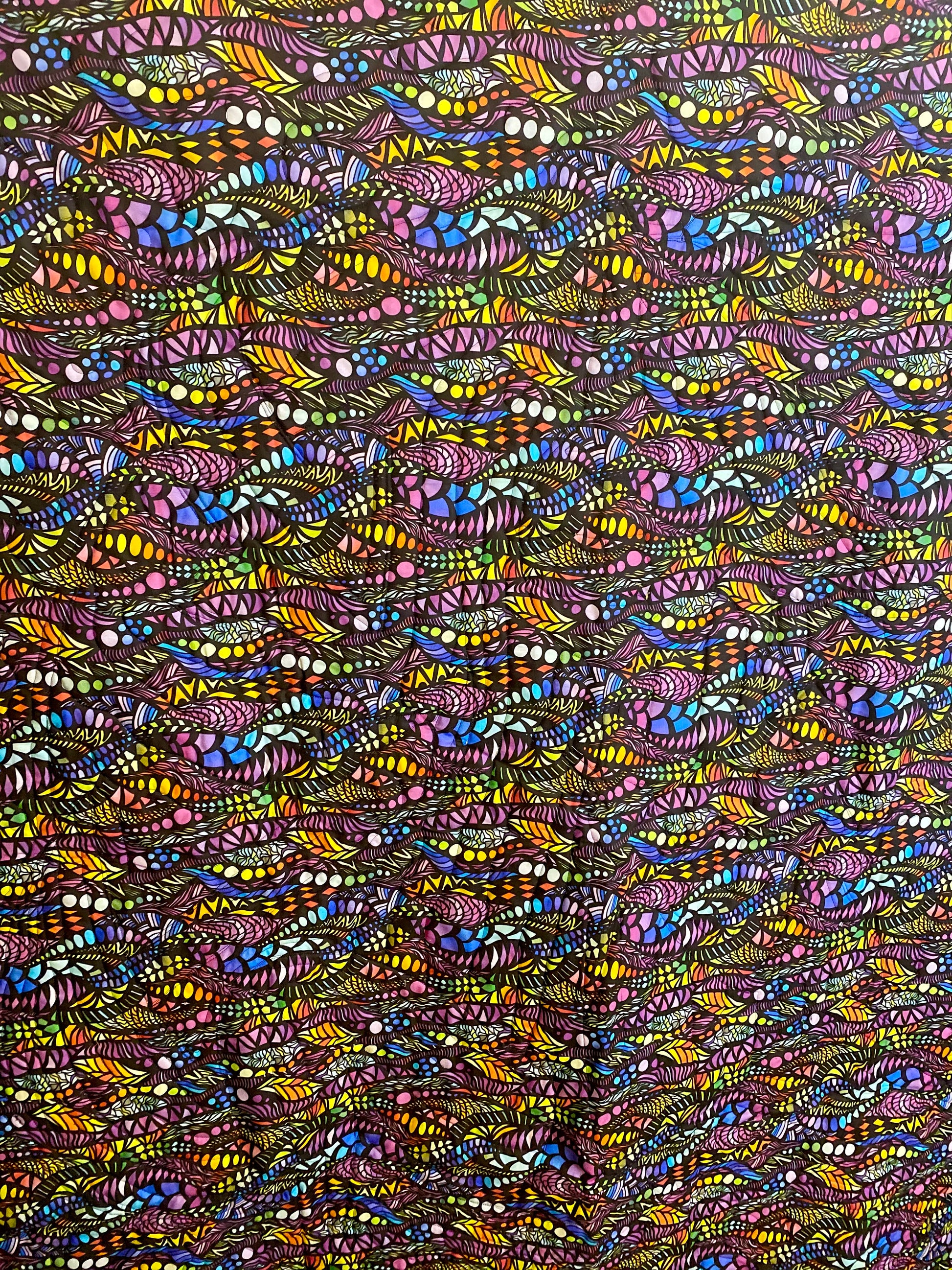 This is a quilt that can be used as a blanket or a decorative wall hanging. We offer two sizes, a 50x60 inches and a 60x90 inches. The 50x60 size can come with or without cloth hangers at no additional charge if you rather hang this as a tapestry. This is the measurement of the tapestry un-quilted. The tapestry may shrink by a couple of inches in the quilting process. Each item features free motion quilting to create depth and texture. This means that no two quilts/wall hangings are exactly the same. In between our top and bottom print is a layer of cotton batting to provide a layer of plushness and warmth. Please watch our Tik Tok videos to get an idea as to how your chosen quilt/wall hanging will look.