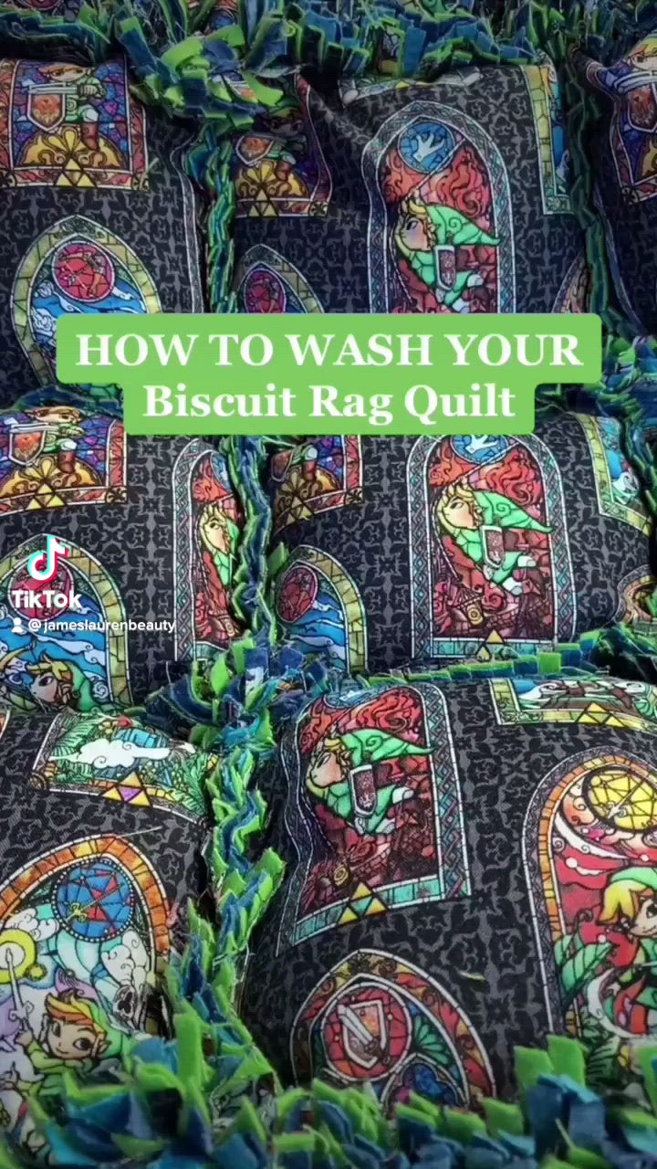Care Instructions: (Please watch our Tik Tok video for more information.) Machine wash cold with a couple of towels and dry on medium heat. We highly suggest using an industrial washer or dryers such as those found in laundromats to prevent clogging up your appliances with frayed bits from the quilt. This type of fraying is completely normal and an expected part of having a rag quilt.
